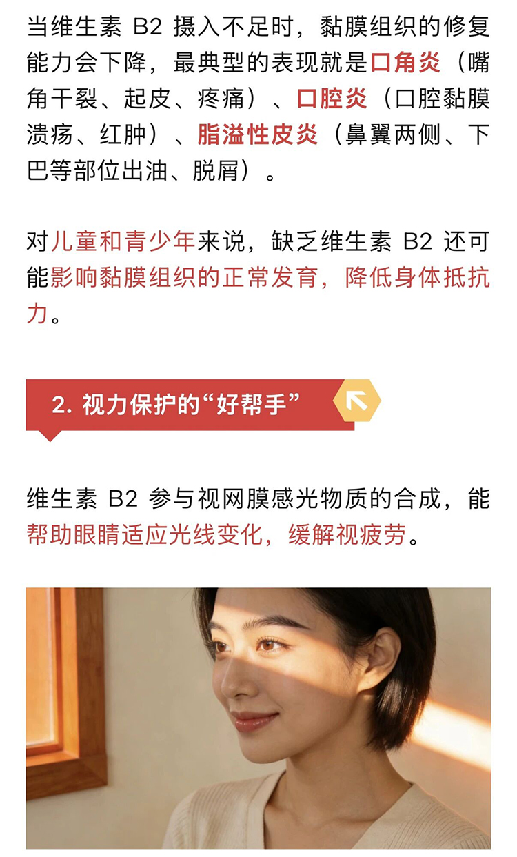 维 B 大家族 | 维生素 B2:守护黏膜与视力的“营养卫士”